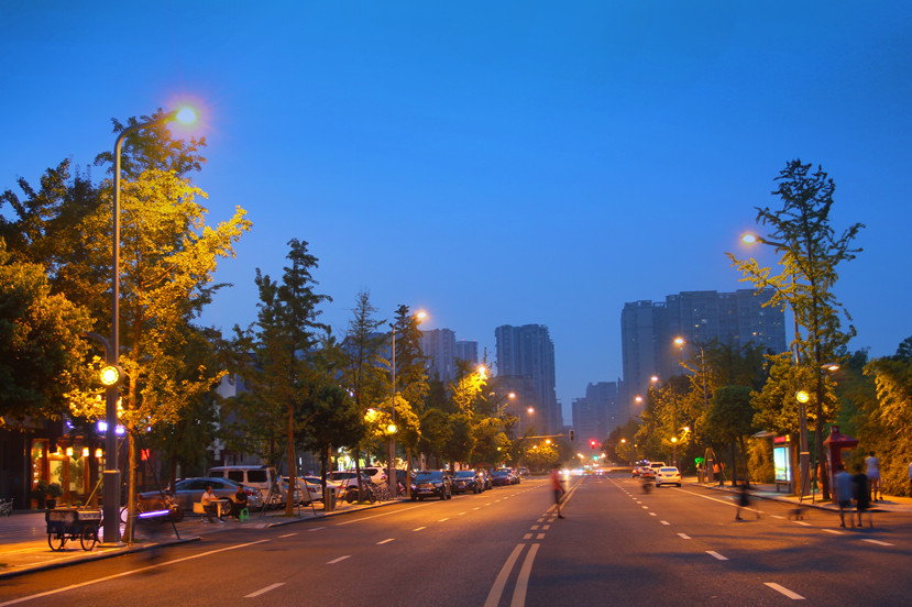 神暉,富有現代感,頗具特色。燈桿,使用具有文化色彩和現代感的顏色——灰色,在燈桿中段建立連接,加上成都獨有的內透太陽神鳥鏤空圖案,蘊含了濃郁的地域文化。